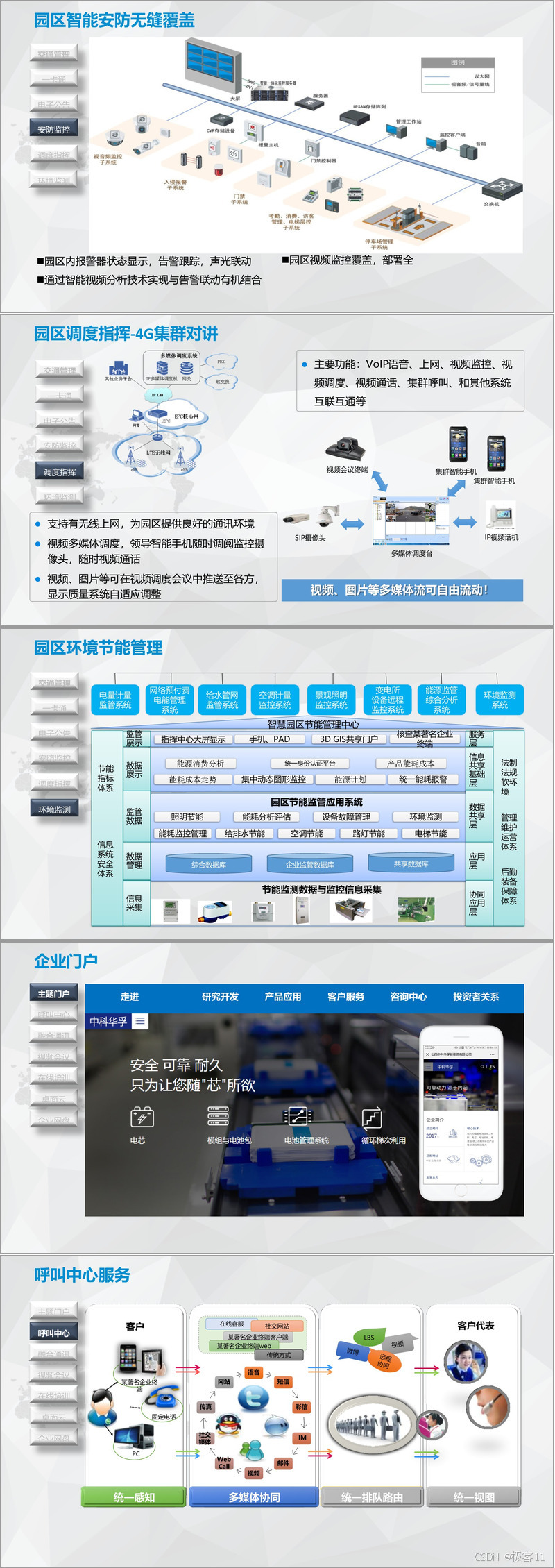 在公共管理层面,智能停车场系统通过车辆图像识别、车位探测与引导、车位预定等功能,大幅提升停车效率与用户体验,并与园区一卡通系统实现无缝对接,统一管理入园车辆与人员身份。安防监控系统则通过报警联动、视频分析及4G集群对讲,构建无死角的安防体系,支持多媒体调度与应急指挥。