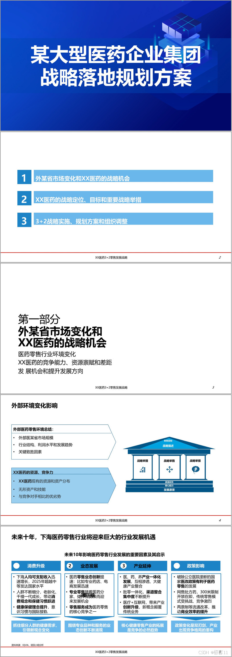 这份战略规划的价值在于既把握了行业发展趋势,又结合了企业实际情况,通过清晰的战略定位和具体的实施路径,为XX医药的转型升级提供了系统指引。特别是在业态创新和能力建设方面的深入思考,体现了战略规划的前瞻性和可操作性。