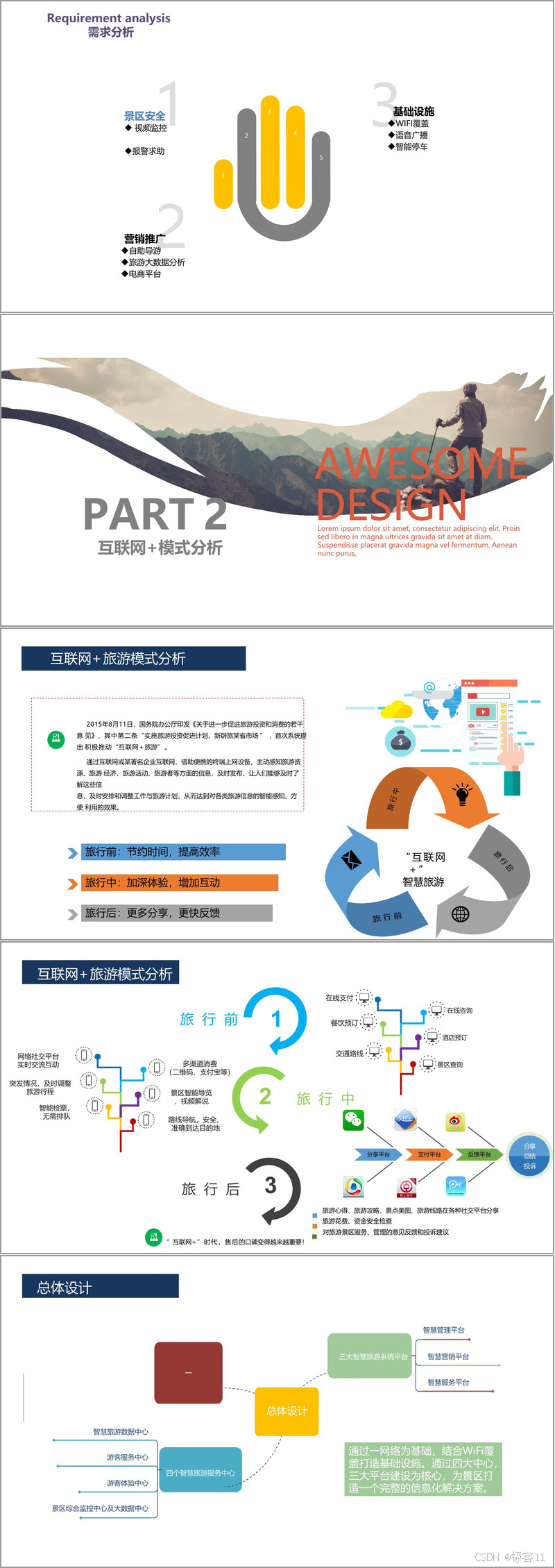 该方案围绕“智慧景区”建设主题,系统性地阐述了一套融合现代信息技术与景区管理服务的综合性蓝图。方案首先从宏观背景切入,指出国家层面对旅游信息化的高度重视,以及旅游市场在互联网影响下呈现的新变化,如信息获取渠道的转变、消费模式的革新、个性化与文化性旅游需求的崛起。这些趋势共同构成了智慧景区建设的必要性与紧迫性。方案进一步明确了需求分析,聚焦于景区安全、营销推广、基础设施等核心领域,为后续的详细设计奠定了坚实基础。