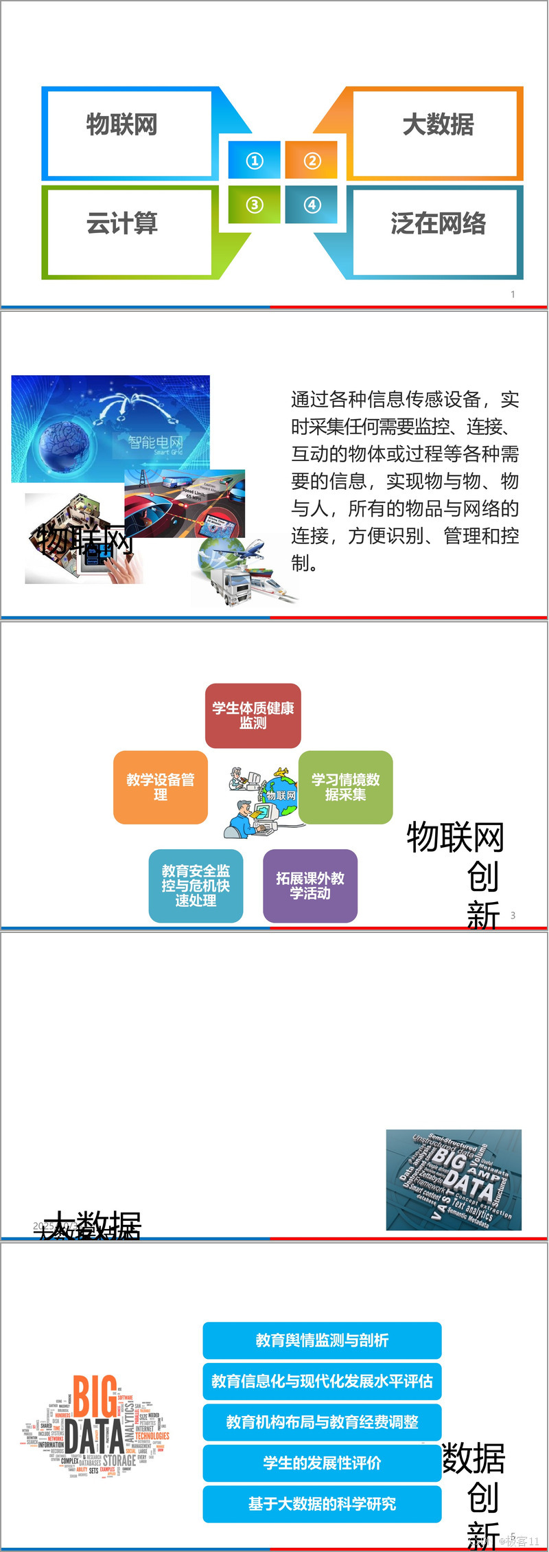 在技术层面,物联网、大数据、云计算和泛在网络的创新应用为智慧教育提供了坚实基础。物联网实现学习情境数据采集和设备管理,大数据支持教育舆情分析和学生发展性评价,云计算则通过云端服务实现学习数据的永久存储与分析。这些技术共同推动了“全球教育资源无缝共享”和“绿色高效管理”愿景的实现。