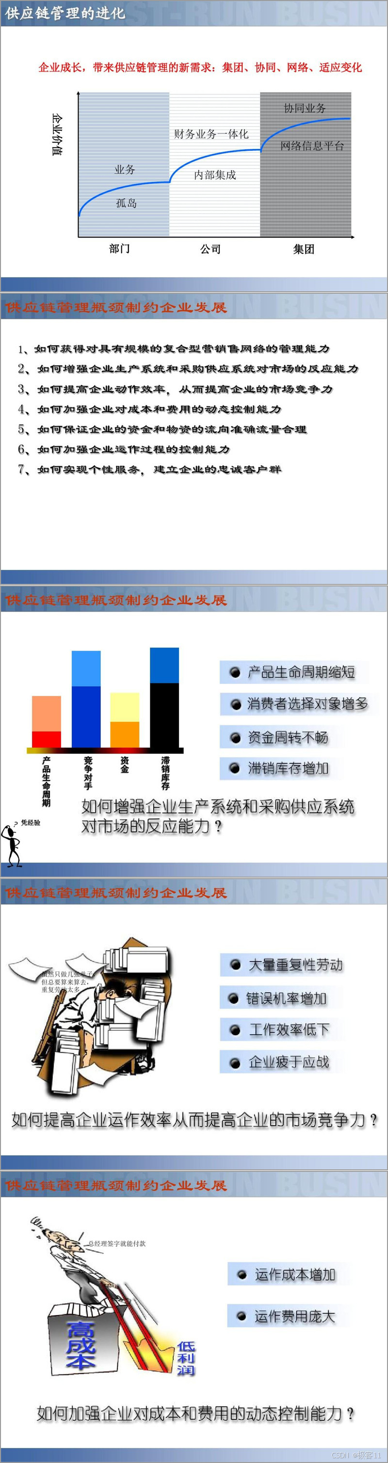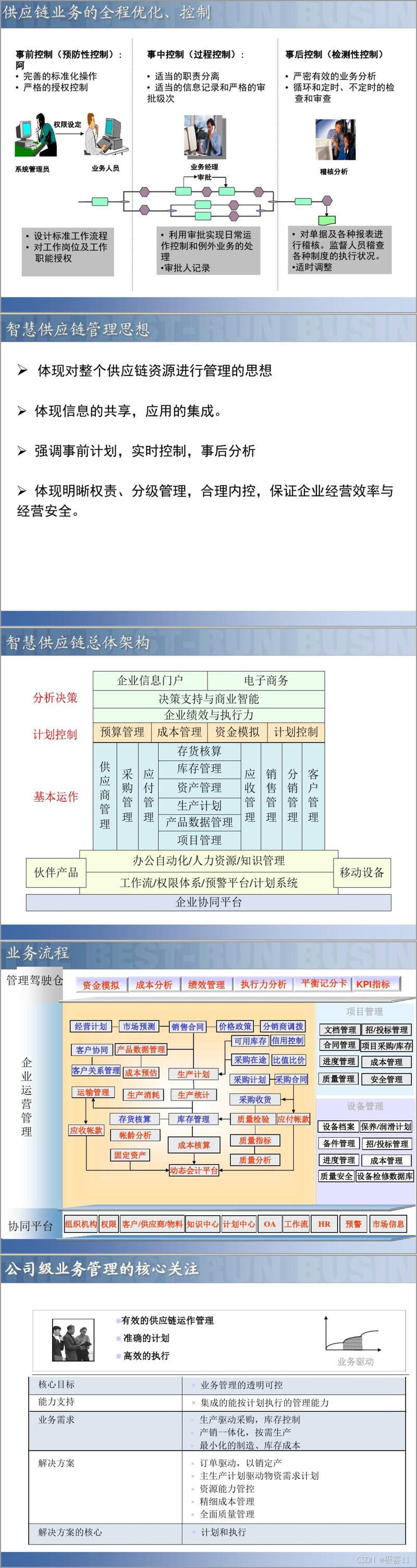 文件开篇明确了现代企业供应链管理面临的多重挑战。随着企业规模扩张与组织架构复杂化,供应链管理难度持续攀升,核心痛点集中在库存与订单匹配失衡、原材料价格波动应对乏力、生产与市场需求脱节、成本费用控制不足等方面。具体来看,企业常面临 “全国库存充足却局部缺货” 的资源配置难题,在原材料价格上涨时缺乏有效应对策略,集团层面难以实时掌握各工厂生产动态,同时复合型营销网络管理能力不足、资金物资流向管控薄弱等问题也制约着企业发展。此外,消费者选择多元化、产品生命周期缩短、滞销库存增加等市场变化,进一步加剧了供应链管理压力,要求企业具备更强的市场反应能力与柔性供应水平。