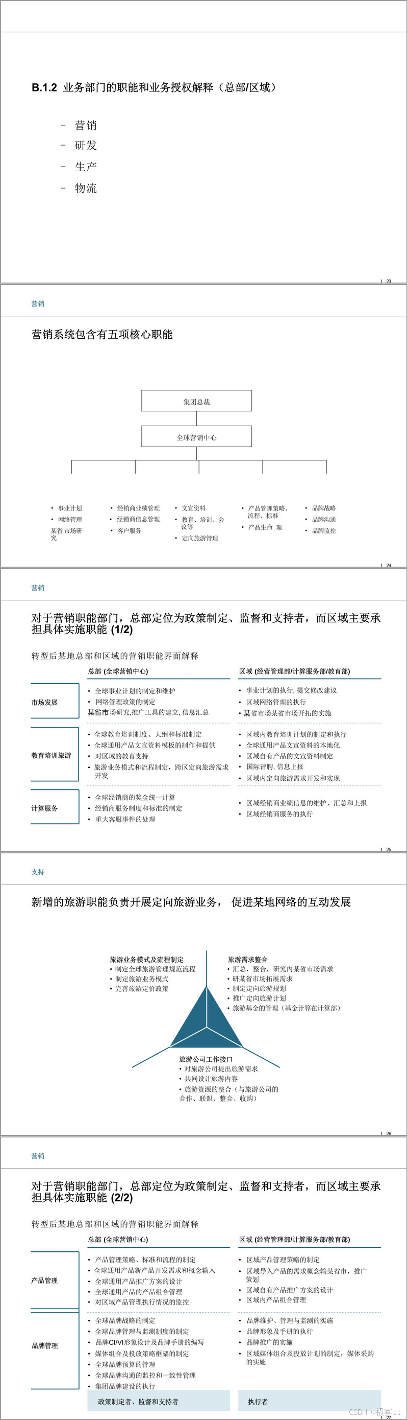 组织管控体系重构是核心内容,明确总部定位为 “战略设计师”,聚焦战略管理、投资管理、全球标准制定等核心职能;区域则承担具体业务运营,具备完整的生产、营销、物流等操作职能。部门职能划分按战略管理、业务、管控、支持四大类展开,战略管理部门负责集团战略规划与实施督导,业务部门涵盖营销、研发、生产、物流等核心领域,管控部门以财务、审计为核心,支持部门则包括人力资源、信息、行政等。同时,明确了跨部门职能界面,如营销与研发在产品开发、品牌管理中的协作机制,物流与生产、营销的衔接流程,避免职能交叉或遗漏。
