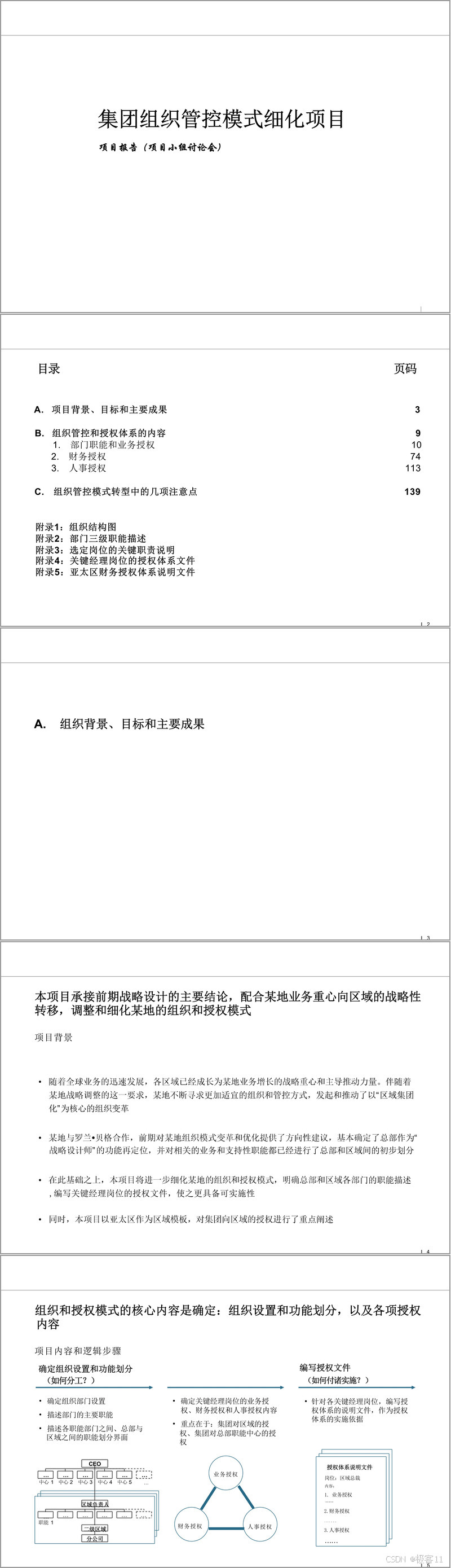 项目背景源于集团全球业务快速发展,区域已成为业务增长核心,需在前期战略规划基础上,进一步明确总部与区域的职能划分、关键岗位授权,形成标准化实施文件。项目核心逻辑是通过 “组织设置与功能划分 + 授权体系构建” 双维度推进,明确 “如何分工” 与 “如何落地” 两大核心问题,最终形成部门职能描述、岗位职责说明、授权体系文件等五大类交付成果,覆盖总部与各级区域的全层级管控需求。