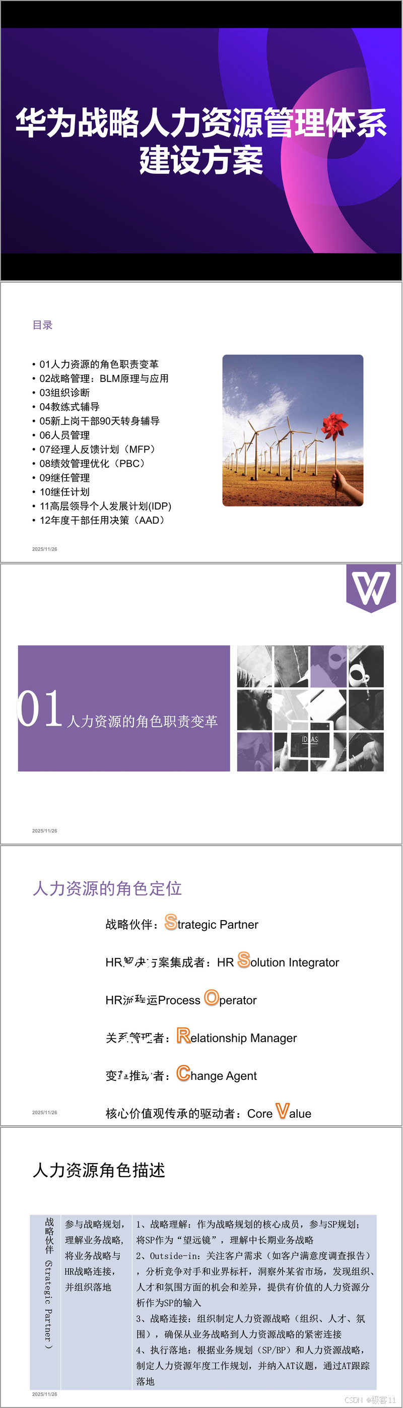 整个体系以核心价值观为引领,将 “成就客户、艰苦奋斗、自我批评、开放进取、至诚守信、团队合作” 融入人力资源管理各环节,通过文化传承与氛围营造,形成凝心聚力的组织环境。华为战略人力资源管理体系的核心逻辑,在于以战略为牵引、以组织为载体、以人才为核心、以绩效为驱动,实现人力资源与业务发展的深度融合,为企业持续增长提供不竭动力。