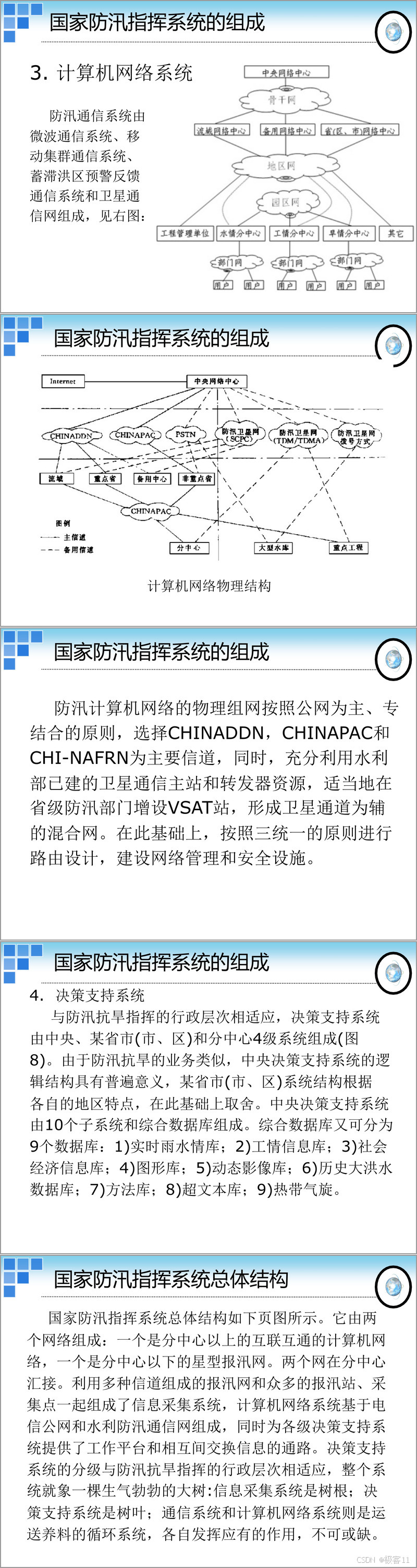 核心系统建设是方案的核心内容,重点规划了四大关键系统。防汛抗旱指挥系统覆盖 7 大流域重点防洪地区,整合 3002 个中央报汛站、795 个工情采集点及 1800 个旱情监测站数据,通过信息采集、通信、计算机网络和决策支持四大子系统,实现 30 分钟内收集核心水情信息、洪水预报预警、防洪调度决策等功能,有效提升水旱灾害应急处置能力。