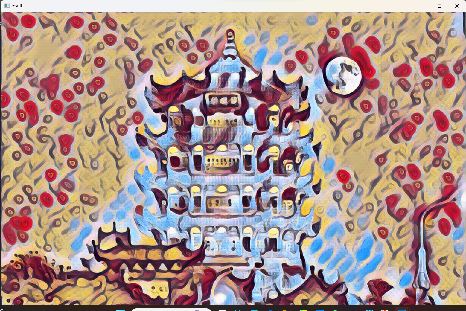 生成图像(Generated Image): 这是最终生成的图像,它同时包含了内容图像的内容和风格图像的风格。