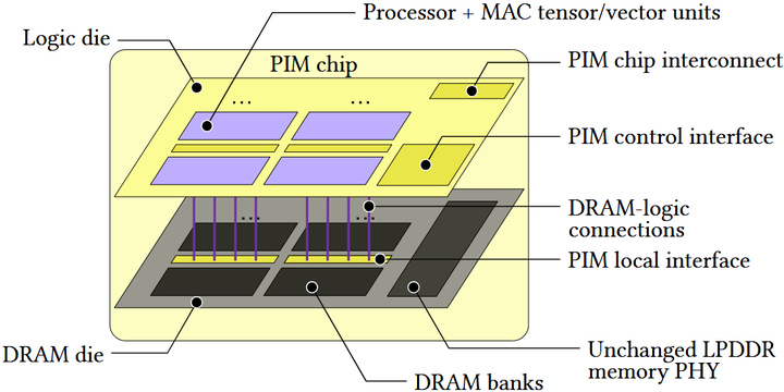 类似地,UPMEM团队提出PIM-AI架构(如下图),将处理单元直接集成在DDR5/LPDDR5内存中,无需修改内存控制器即可用作LLM推理。在云端场景下,PIM-AI相比顶级GPU实现在每秒查询成本上降低近7倍;在移动场景下,每token能耗降低10–20倍,查询吞吐增加25–45% arxiv。这些工作表明,内存计算(Processing-In-Memory)和光子计算等新兴硬件技术有望显著提高AI计算的能效和成本效益。