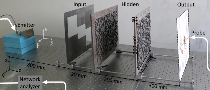 该研究演示了基于光学神经网络(ONN,Optical neural network,wiki)的AI加速平台,通过片上激光器、放大器和调制器等组件实现整体光子芯片集成,具有较传统GPU更高的能效和可扩展性(如下图)。