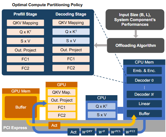 GPU 与 CPU(如 AMX)、NPU、以及通过 CXL 扩展的内存耦合加强: 这些异构组件的集成不仅改变了同步路径,也推动了跨设备协同的基础设施演进,从而促进 GPU 对 CPU 内存的透明访问,以此改变流水关键路径 (如下图,LIA acm)。