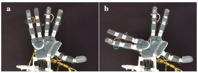 如上原文Fig. 4 :把第4、5指的MCP外展/内收关节合并为一个位于掌部更低、更中线的位置的单轴关节,从而把两指作为“一个整体”去外展,活动范围接近90°,带来非拟人但更有用的抓取姿态。具体地,