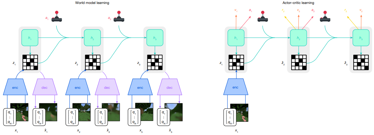 在强化学习与控制领域,Hafner 的 Dreamer 系列(V1–V4)通过“在世界模型里做 RL”系统性地展示:在 Atari、连续控制乃至跨 150+ 复杂任务上,基于世界模型的 agent 同时取得更高样本效率和更强泛化,最新 Nature 2025工作已超过大量专门算法。