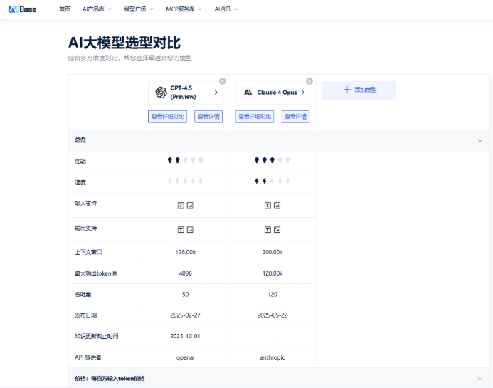 ✅ GPT-4.5vs Claude4全参数对比工具: