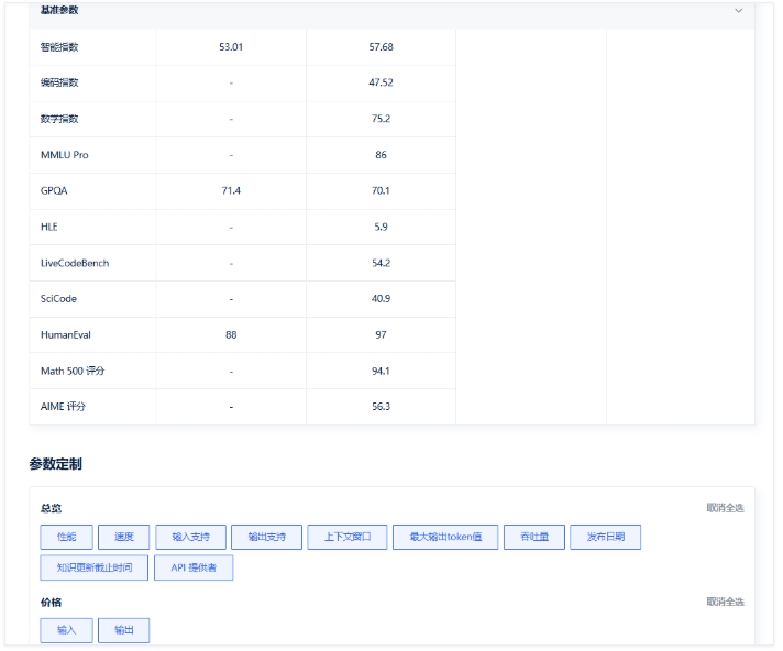 模型能力、上下文长度、接口价格、API调用限制等关键指标一目了然 |