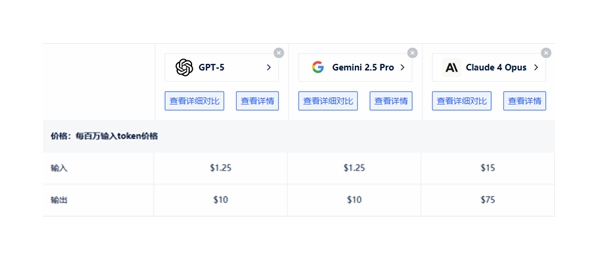 从定价角度看,GPT-5和Gemini2.5Pro提供了相同的价格水平($1.25/$10.00),而Claude4Opus的定价显著更高($15/$75)。考虑到性能差异,GPT-5在大多数任务上的表现均衡性更好,因此整体性价比最高。Gemini2.5Pro虽然在某些基准测试中略逊于GPT-5,但其独特的长上下文能力和多模态支持为特定用例提供了无可替代的价值。Claude4Opus的高定价主要体现在其专业编程能力和企业级可靠性上。