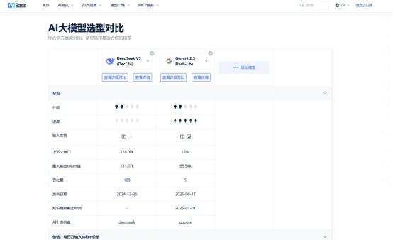 为确保评测的公正性和客观性,本次对比的所有基础数据均来自AIbase模型选型对比平台。这是一个提供多维度模型对比数据的第三方平台,帮助用户做出基于数据的理性决策。