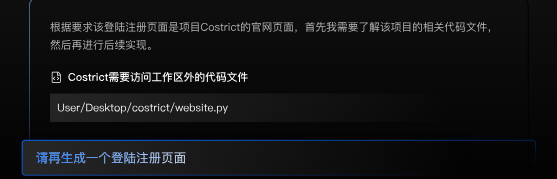 Costrict 的错误自行修复功能是其又一亮点。它能够自行检查代码,并对问题代码进行修复,大大减少了人工调试的工作量。在软件开发过程中,调试工作往往占据了开发人员大量的时间和精力,而 Costrict 通过智能化的错误修复机制,让开发人员从繁琐的调试工作中解放出来,将更多的时间和精力投入到更具创造性和价值的工作中。这一功能不仅提高了开发效率,还降低了人为因素导致的错误风险,为软件项目的快速迭代和高质量交付提供了有力支持。