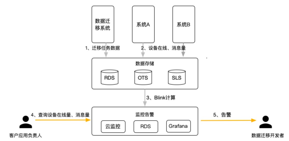 - 数据迁移系统,可以将任务执行的状态持久化存储到RDS中。设备的迁移状态由于数据量比较到可以存储到OTS或者Hbase中。迁移过程中的一些操作,可以打印日志,收集到云产品SLS中。