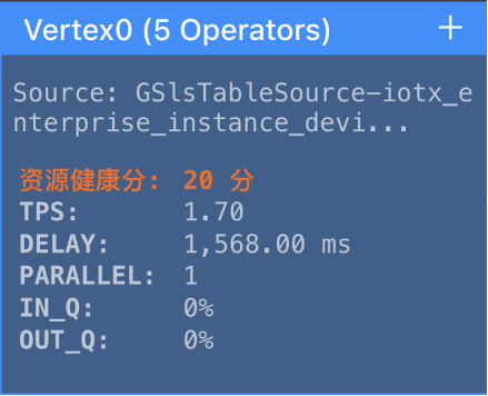 首先要定位出现问题的Vertex。在运行信息 > Vertex拓扑中查看节点的信息。每个Vertex会有自己的健康分,当某个Vertex健康分过低时,该Vertex可能出现问题,从而影响整个链路。