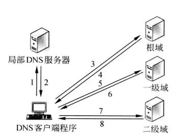 1.从"根域名服务器"查到"顶级域名服务器"的NS记录和A记录(IP地址) 2.从"顶级域名服务器"查到"二级域名服务器"的NS记录和A记录(IP地址) 3.从"二级域名服务器"查出"主机名"的IP地址