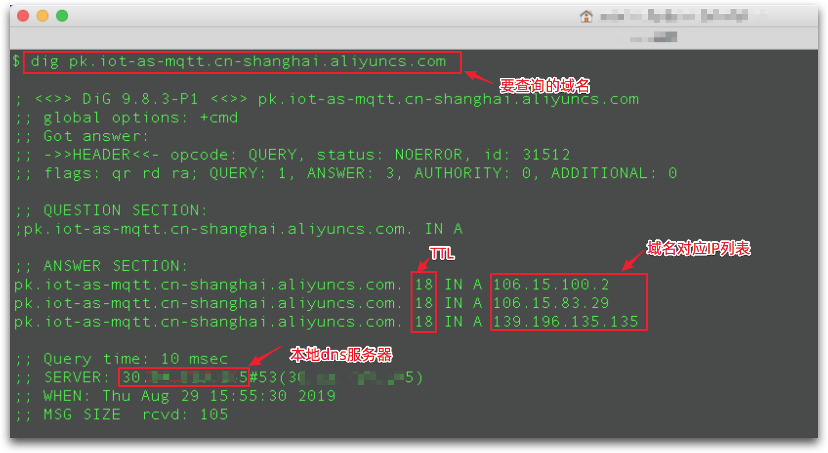 如果你要访问域名 pk.iot-as-mqtt.cn-shanghai.aliyuncs.com,首先要通过DNS查出它的IP地址是139.196.135.135。