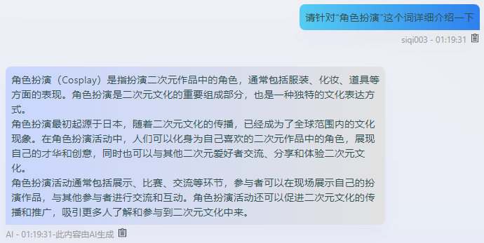 如:“请针对“角色扮演”这个词详细介绍一下”