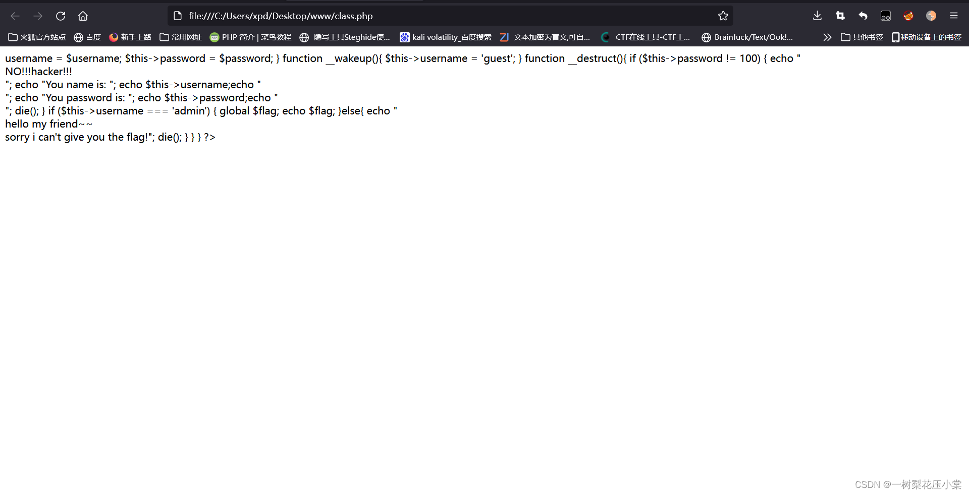 在反序列化的时候会首先执行__wakeup()魔术方法,但是这个方法会把我们的username重新赋值,所以我们要考虑的就是怎么绕过__wakeup(),而去执行__destruct。