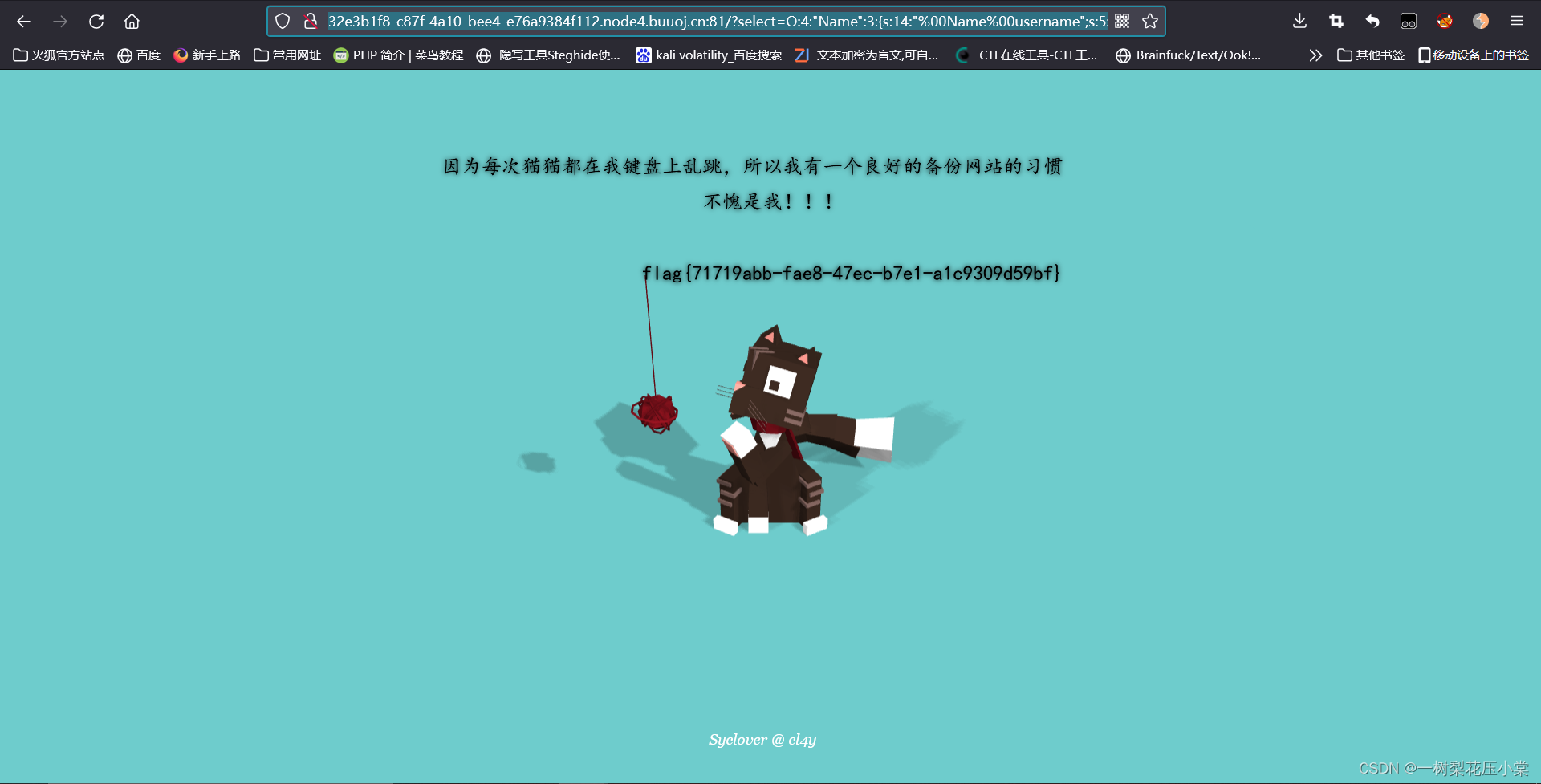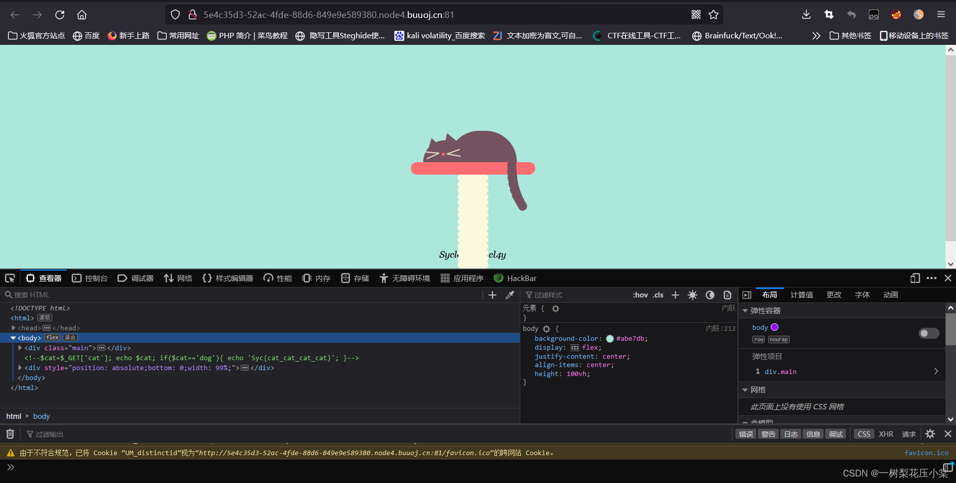 以GET方式传入cat,直接输出cat的值,若cat的值为dog,则输出“Syc{cat_cat_cat_cat}”。