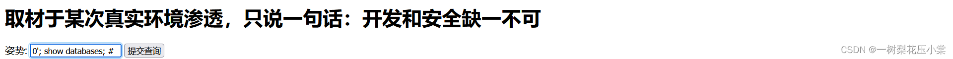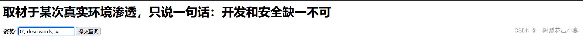 堆叠注入的原理:在SQL中,分号表示一条语句的结束。如果在分号的后面再加一条语句,这条语句也可以被执行,继续加一个分号和一条语句,这样就可以在一次数据库的调用中执行多个语句。