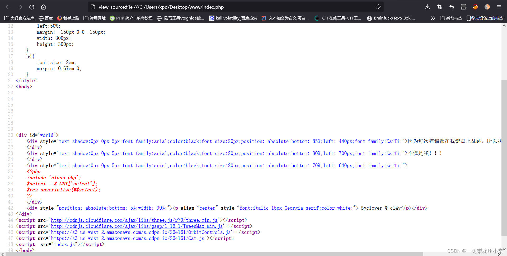 下载下来后,查看index.php源代码发现: