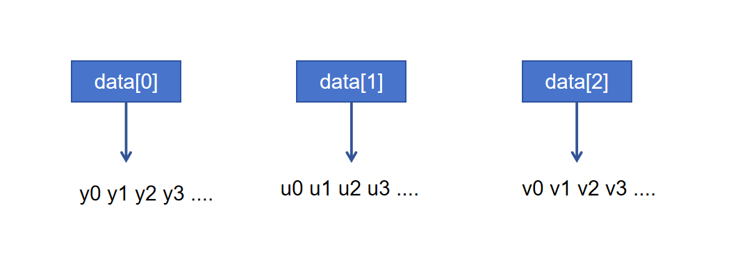 特点:Y、U、V三个分量分别存储在三个独立的平面。