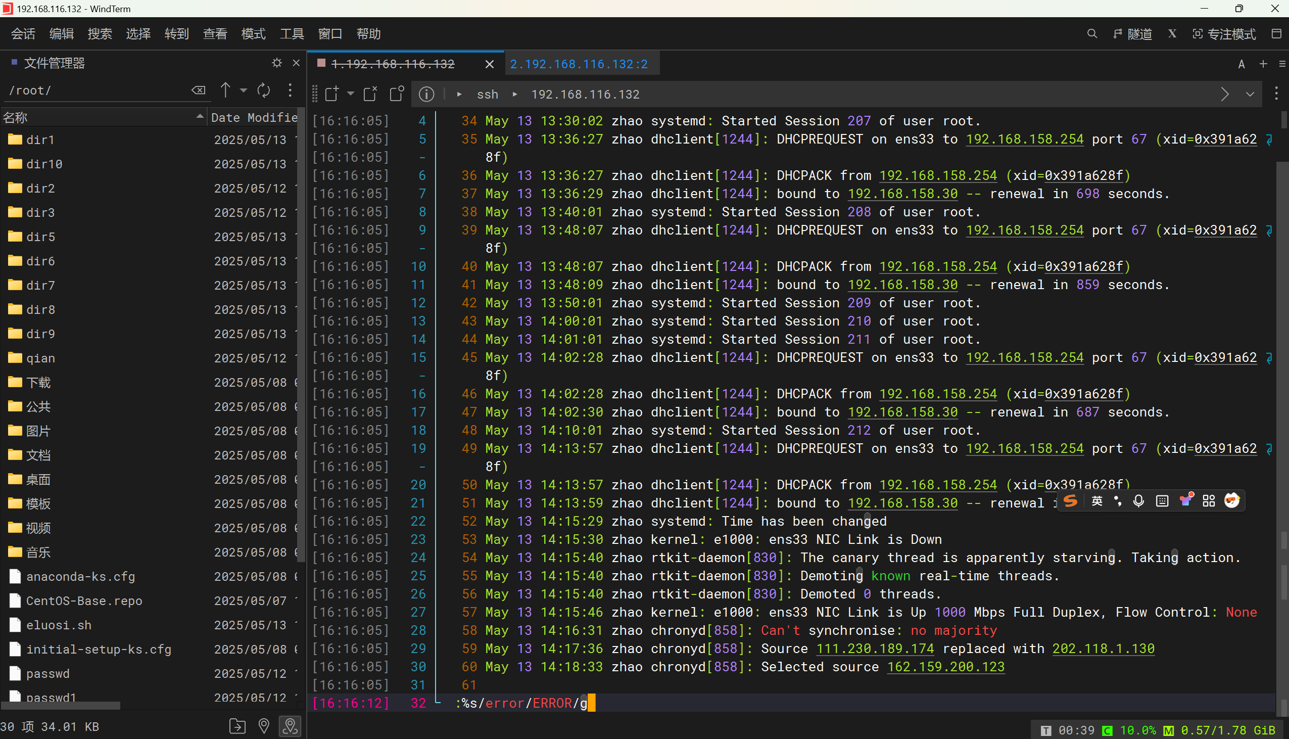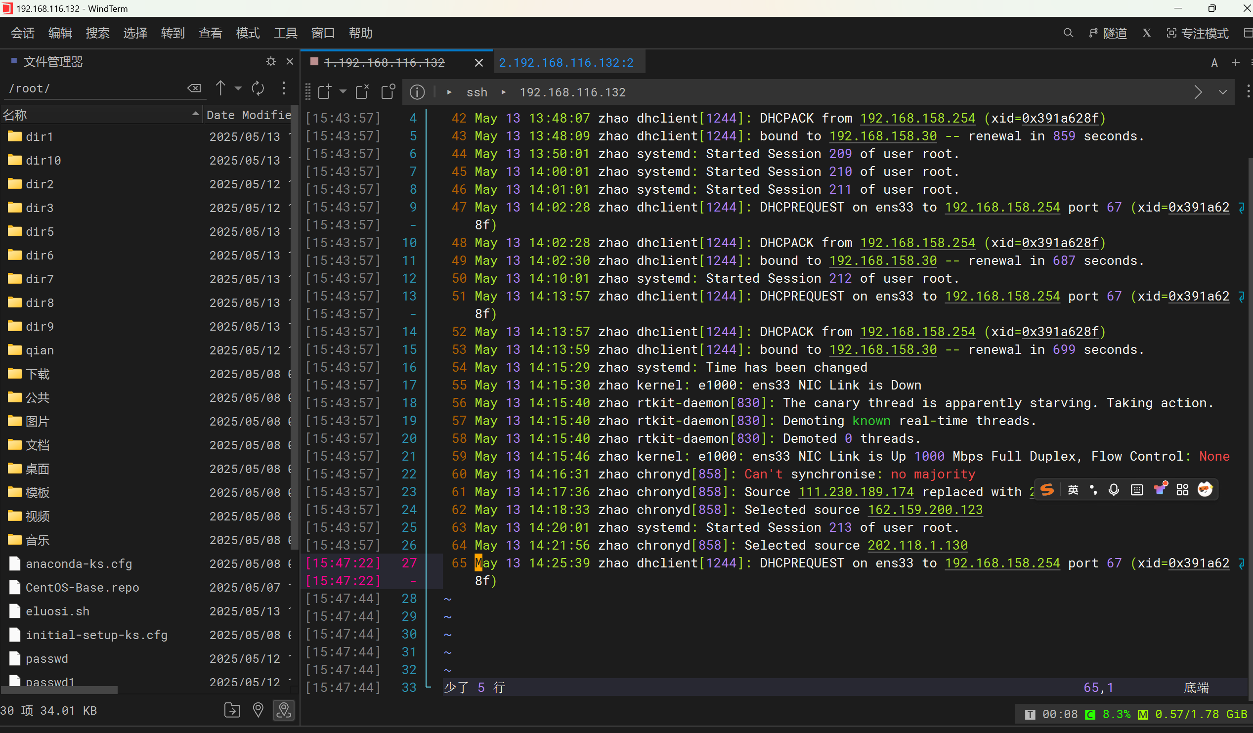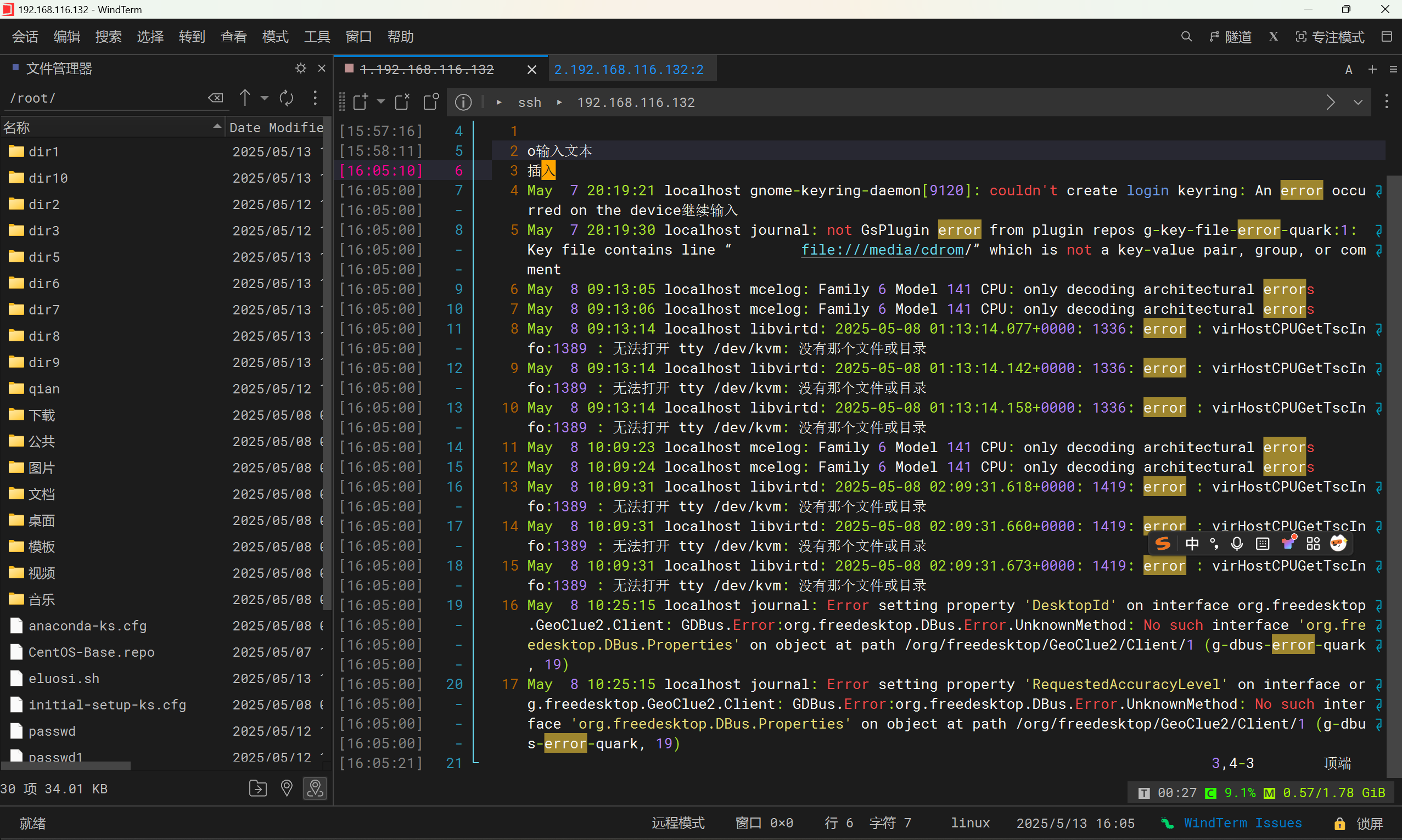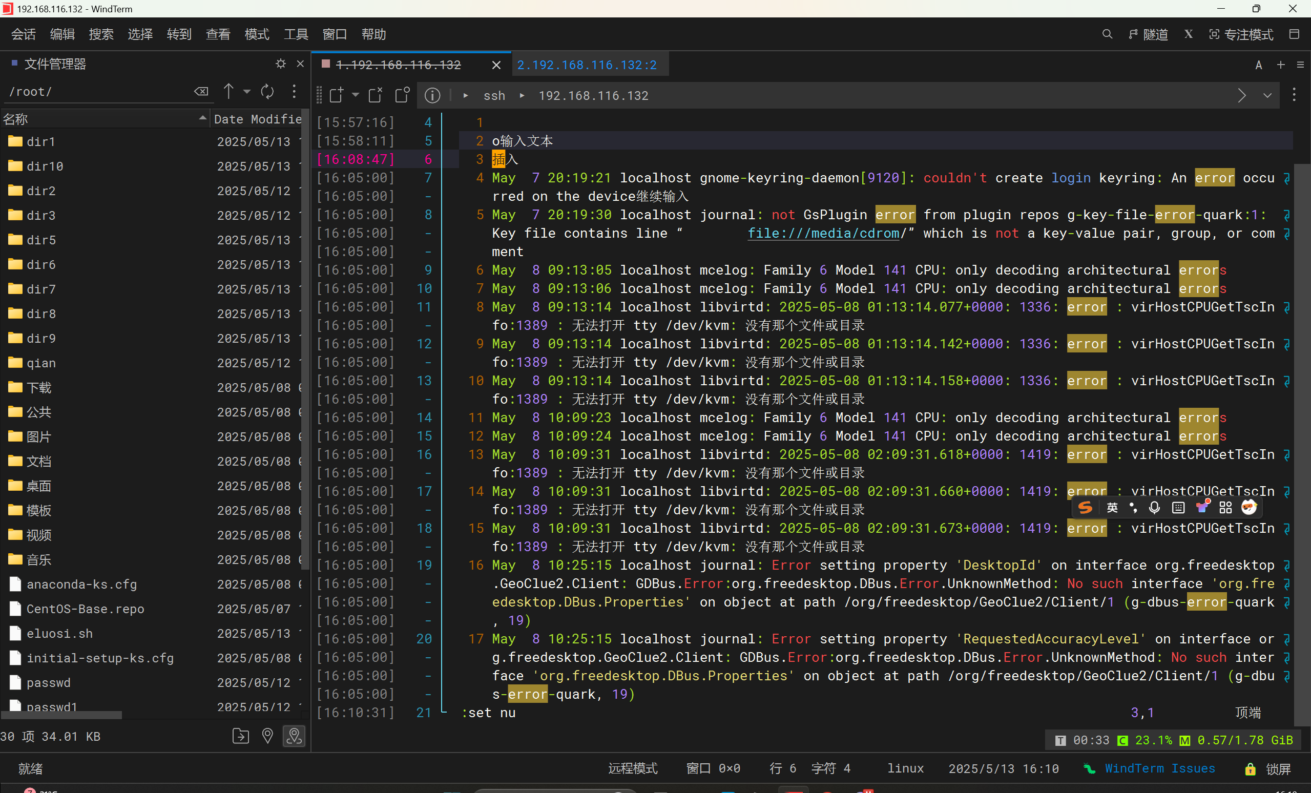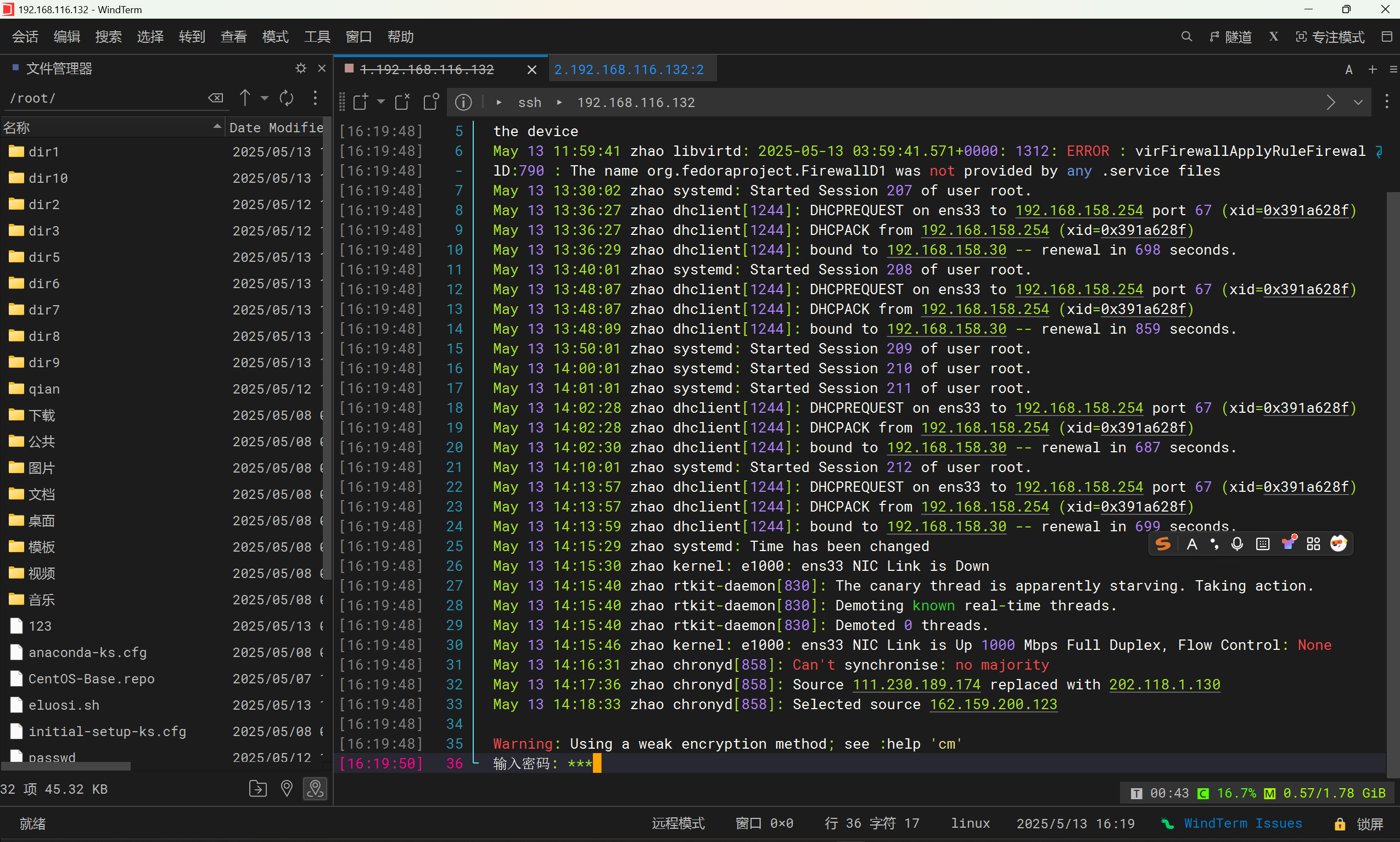 May 7 20:18:07 localhost mcelog: Family 6 Model 141 CPU: only decoding architectural errors May 7 20:18:07 localhost mcelog: Family 6 Model 141 CPU: only decoding architectural errors May 7 20:18:15 localhost libvirtd: 2025-05-07 12:18:15.121+0000: 1435: error : virHostCPUGetTscInfo:1389 : 无法打开 tty /dev/kvm: 没有那个文件或目录 May 7 20:18:16 localhost libvirtd: 2025-05-07 12:18:16.166+0000: 1435: error : virHostCPUGetTscInfo:1389 : 无法打开 tty /dev/kvm: 没有那个文件或目录 May 7 20:18:16 localhost libvirtd: 2025-05-07 12:18:16.183+0000: 1435: error : virHostCPUGetTscInfo:1389 : 无法打开 tty /dev/kvm: 没有那个文件或目录 May 7 20:19:21 localhost gnome-keyring-daemon[9120]: couldn't create login keyring: An error occurred on the device May 7 20:19:30 localhost journal: not GsPlugin error from plugin repos g-key-file-error-quark:1: Key file contains line “ file:///media/cdrom/” which is not a key-value pair, group, or comment May 8 09:13:05 localhost mcelog: Family 6 Model 141 CPU: only decoding architectural errors May 8 09:13:06 localhost mcelog: Family 6 Model 141 CPU: only decoding architectural errors May 8 09:13:14 localhost libvirtd: 2025-05-08 01:13:14.077+0000: 1336: error : virHostCPUGetTscInfo:1389 : 无法打开 tty /dev/kvm: 没有那个文件或目录 May 8 09:13:14 localhost libvirtd: 2025-05-08 01:13:14.142+0000: 1336: error : virHostCPUGetTscInfo:1389 : 无法打开 tty /dev/kvm: 没有那个文件或目录 May 8 09:13:14 localhost libvirtd: 2025-05-08 01:13:14.158+0000: 1336: error : virHostCPUGetTscInfo:1389 : 无法打开 tty /dev/kvm: 没有那个文件或目录 May 8 10:09:23 localhost mcelog: Family 6 Model 141 CPU: only decoding architectural errors May 8 10:09:24 localhost mcelog: Family 6 Model 141 CPU: only decoding architectural errors May 8 10:09:31 localhost libvirtd: 2025-05-08 02:09:31.618+0000: 1419: error : virHostCPUGetTscInfo:1389 : 无法打开 tty /dev/kvm: 没有那个文件或目录 May 8 10:09:31 localhost libvirtd: 2025-05-08 02:09:31.660+0000: 1419: error : virHostCPUGetTscInfo:1389 : 无法打开 tty /dev/kvm: 没有那个文件或目录 May 8 10:09:31 localhost libvirtd: 2025-05-08 02:09:31.673+0000: 1419: error : virHostCPUGetTscInfo:1389 : 无法打开 tty /dev/kvm: 没有那个文件或目录 May 8 10:25:15 localhost journal: Error setting property 'DesktopId' on interface org.freedesktop.GeoClue2.Client: GDBus.Error:org.freedesktop.DBus.Error.UnknownMethod: No such interface 'org.freedesktop.DBus.Properties' on object at path /org/freedesktop/GeoClue2/Client/1 (g-dbus-error-quark, 19) May 8 10:25:15 localhost journal: Error setting property 'RequestedAccuracyLevel' on interface org.freedesktop.GeoClue2.Client: GDBus.Error:org.freedesktop.DBus.Error.UnknownMethod: No such interface 'org.freedesktop.DBus.Properties' on object at path /org/freedesktop/GeoClue2/Client/1 (g-dbus-error-quark, 19) May 8 10:36:08 localhost journal: shell-extensions did not set error for gs_plugin_refresh May 8 10:59:15 localhost journal: shell-extensions did not set error for gs_plugin_refresh May 9 09:25:48 localhost journal: shell-extensions did not set error for gs_plugin_refresh May 9 14:54:18 zhao mcelog: Family 6 Model 141 CPU: only decoding architectural errors May 9 14:54:18 zhao mcelog: Family 6 Model 141 CPU: only decoding architectural errors May 9 14:54:40 zhao libvirtd: 2025-05-09 06:54:40.641+0000: 2078: error : virHostCPUGetTscInfo:1389 : 无法打开 tty /dev/kvm: 没有那个文件或目录 May 9 14:54:40 zhao libvirtd: 2025-05-09 06:54:40.660+0000: 2078: error : virHostCPUGetTscInfo:1389 : 无法打开 tty /dev/kvm: 没有那个文件或目录 May 9 14:54:40 zhao libvirtd: 2025-05-09 06:54:40.662+0000: 2078: error : virHostCPUGetTscInfo:1389 : 无法打开 tty /dev/kvm: 没有那个文件或目录 May 12 11:01:44 zhao journal: not GsPlugin error from plugin repos g-key-file-error-quark:1: Key file contains line “ http://mirrors.aliyuncs.com/centos/$releasever/os/$basearch/” which is not a key-value pair, group, or comment May 12 11:01:53 zhao journal: shell-extensions did not set error for gs_plugin_refresh May 12 11:06:04 zhao journal: shell-extensions did not set error for gs_plugin_refresh May 12 11:08:23 zhao rz[19211]: [root] deepin-desktop-community-20.9-amd64.iso/ZMODEM: error: zgethdr returned TIMEOUT May 12 11:08:23 zhao rz[19211]: [root] deepin-desktop-community-20.9-amd64.iso/ZMODEM: error May 12 11:08:23 zhao rz[19211]: [root] no.name/ZMODEM: got error May 13 10:12:48 zhao gnome-keyring-daemon[16982]: couldn't create login keyring: An error occurred on the device May 13 11:59:41 zhao libvirtd: 2025-05-13 03:59:41.571+0000: 1312: error : virFirewallApplyRuleFirewallD:790 : The name org.fedoraproject.FirewallD1 was not provided by any .service files May 13 13:30:02 zhao systemd: Started Session 207 of user root. May 13 13:36:27 zhao dhclient[1244]: DHCPREQUEST on ens33 to 192.168.158.254 port 67 (xid=0x391a628f) May 13 13:36:27 zhao dhclient[1244]: DHCPACK from 192.168.158.254 (xid=0x391a628f) May 13 13:36:29 zhao dhclient[1244]: bound to 192.168.158.30 -- renewal in 698 seconds. May 13 13:40:01 zhao systemd: Started Session 208 of user root. May 13 13:48:07 zhao dhclient[1244]: DHCPREQUEST on ens33 to 192.168.158.254 port 67 (xid=0x391a628f) May 13 13:48:07 zhao dhclient[1244]: DHCPACK from 192.168.158.254 (xid=0x391a628f) May 13 13:48:09 zhao dhclient[1244]: bound to 192.168.158.30 -- renewal in 859 seconds. May 13 13:50:01 zhao systemd: Started Session 209 of user root. May 13 14:00:01 zhao systemd: Started Session 210 of user root. May 13 14:01:01 zhao systemd: Started Session 211 of user root. May 13 14:02:28 zhao dhclient[1244]: DHCPREQUEST on ens33 to 192.168.158.254 port 67 (xid=0x391a628f) May 13 14:02:28 zhao dhclient[1244]: DHCPACK from 192.168.158.254 (xid=0x391a628f) May 13 14:02:30 zhao dhclient[1244]: bound to 192.168.158.30 -- renewal in 687 seconds. May 13 14:10:01 zhao sys