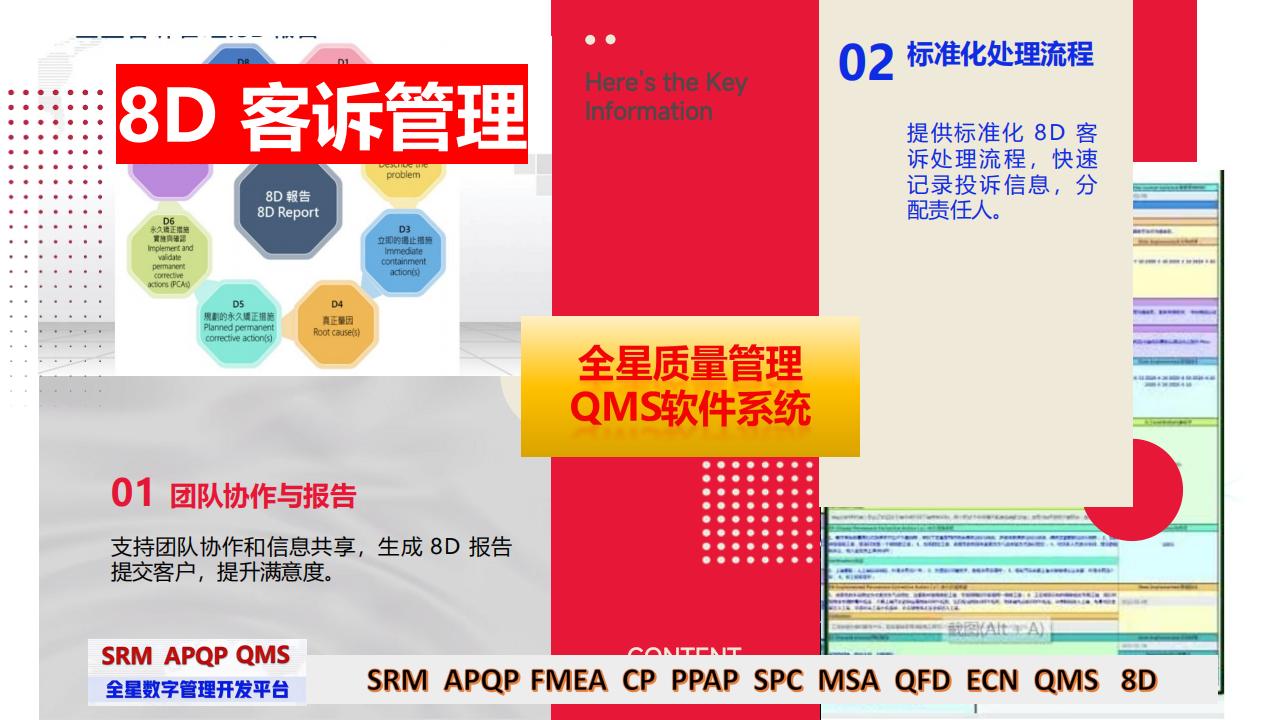 - 支持多渠道投诉录入(邮件、微信、ERP接口等),自动触发8D流程。