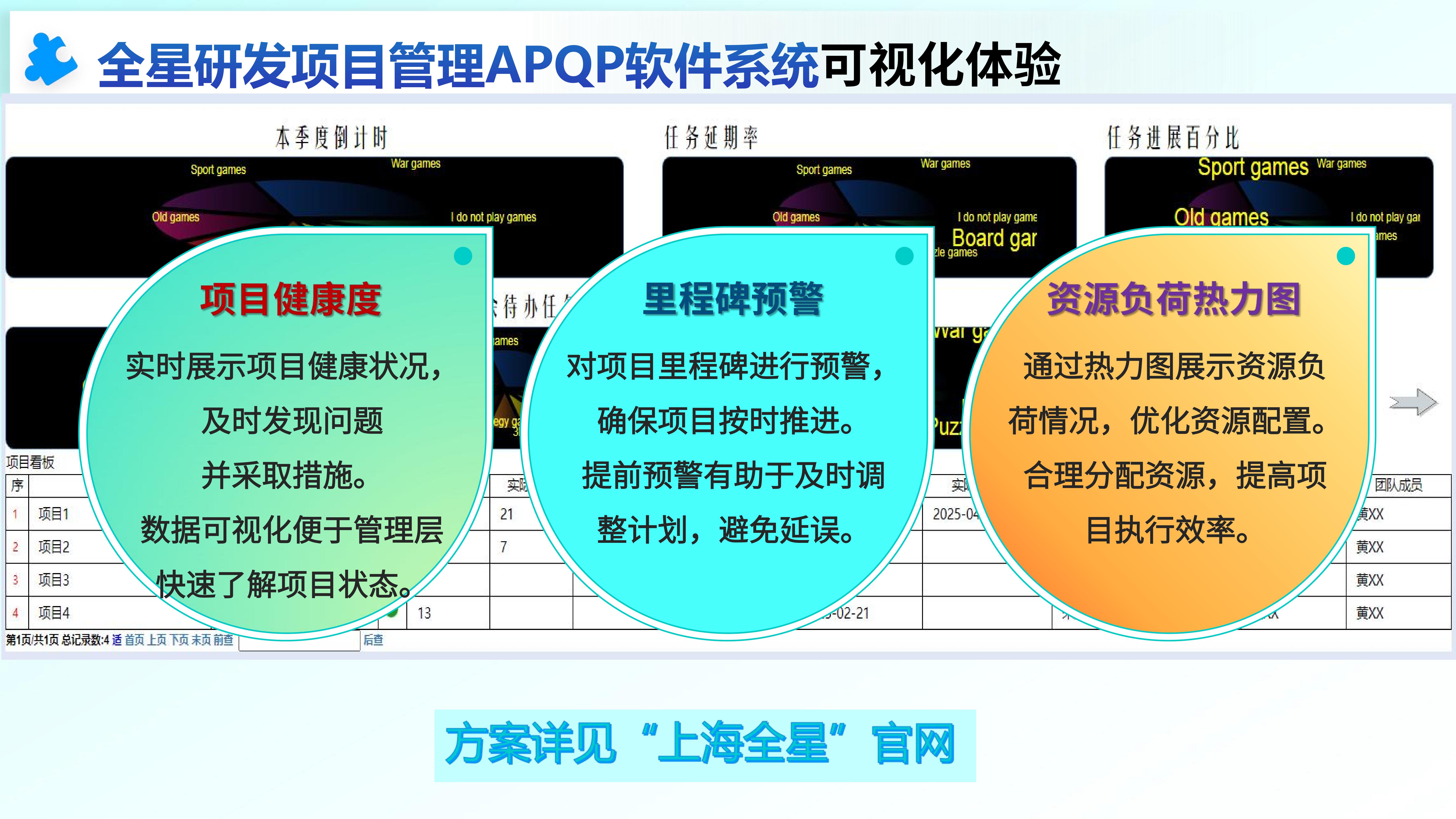研发过程中,“找工具、凑数据、补流程” 的碎片化工作,往往消耗团队大量精力。全星研发项目管理 APQP 软件系统,将汽车部件研发所需的核心能力 “打包集成”,打造一站式 “智慧中枢”: