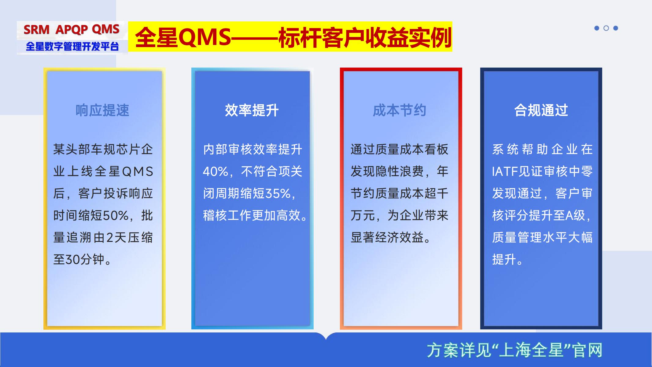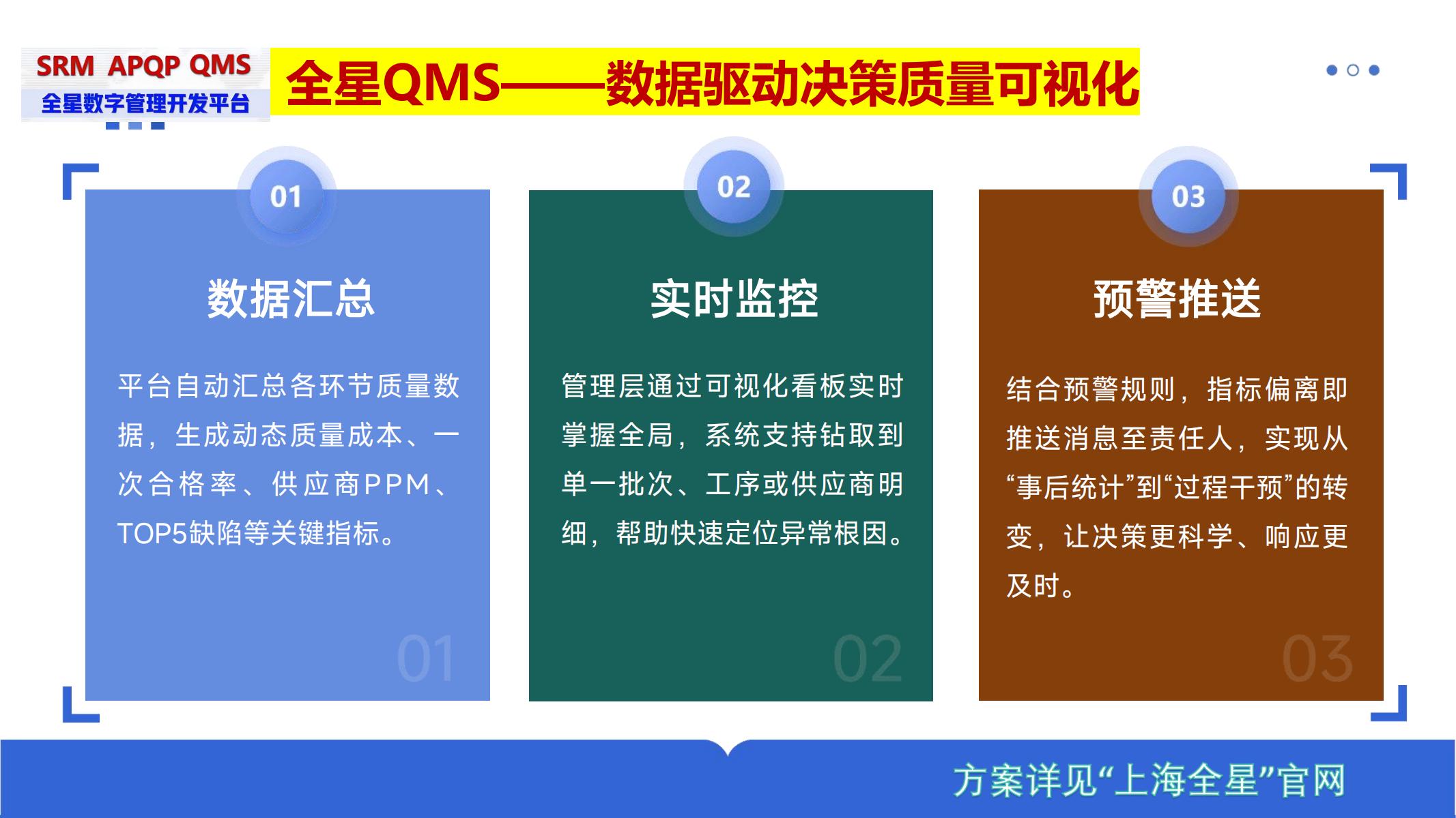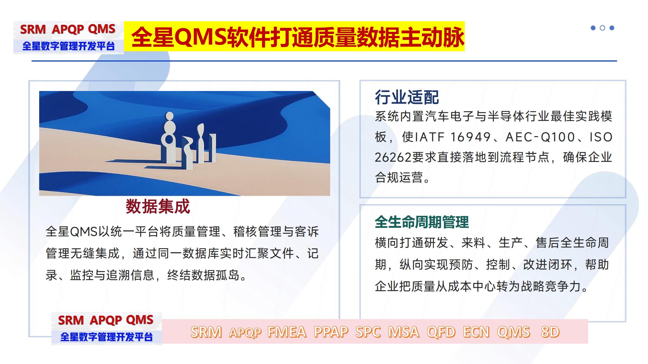 《全星质量管理QMS软件系统》作为新一代数字化质量管理平台,凭借全流程管控、智能分析和深度协同等核心优势,正成为先进制造企业实现质量跃升的首选方案。