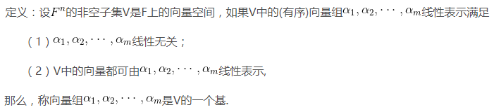 基的概念源于线性代数,一般指向量空间的基,其定义为: