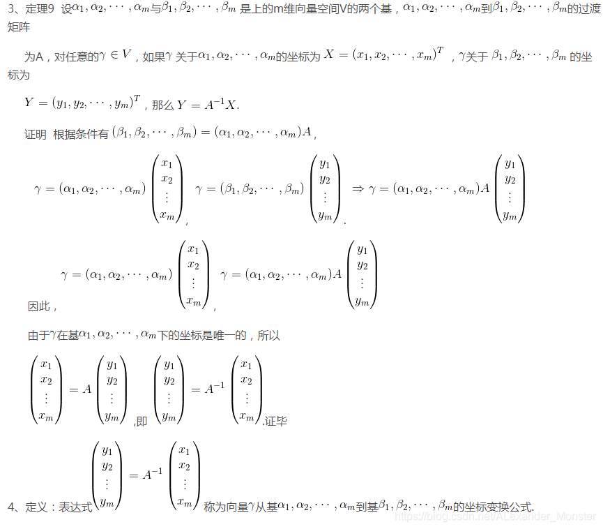 注意,基变换是右乘的,即过渡矩阵A被乘在右边。
