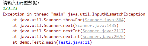 需要注意的是,调用了那种类型的方法,就必须输入这种类型的数据,否则可能会报转换错误异常 Exception in thread "main" java.util.InputMismatchException