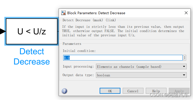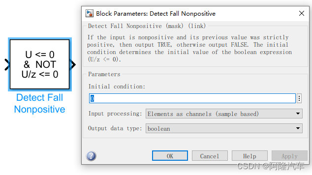 上一个时刻为正数,这个时刻为非正数的时候,输出为true
