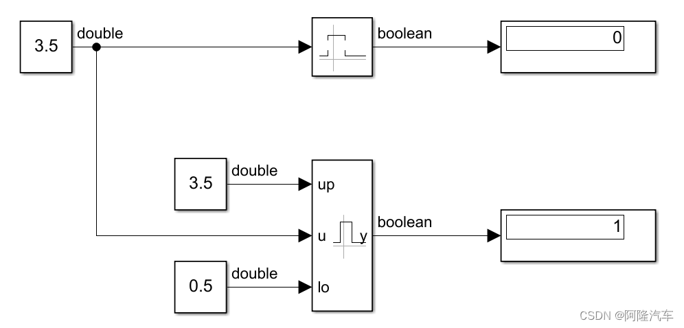 不包含边界值的时候,模块图标也会变化,3.5不在(0.5, 3.5)之内,输出为false。