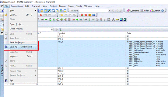 保存完后我们下次再使用工程就不需要重新配置DBC这些操作,可以直接使用当前已经配置好的部分