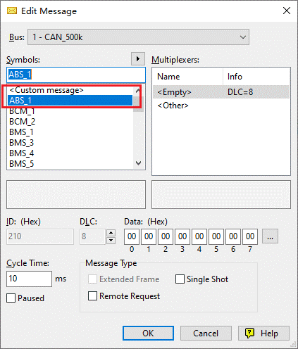 可以选择DBC中的Message,然后就会自动使用DBC中的配置,ID,Cycle Time这些