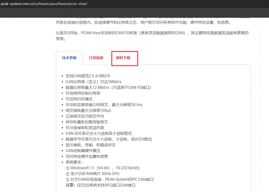 PCAN-View由PEAK官网免费提供,可以直接进行下载
