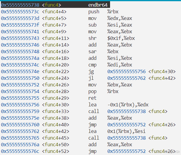 0x0000555555555650 <+69>: mov %ebx,%eax