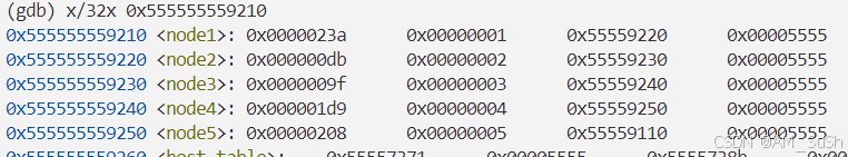0x0000555555555903 <+133>: lea 0x3906(%rip),%rdx # 0x555555559210 <node1>