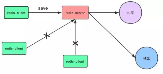 当客户端向服务器发送save命令请求进行持久化时,服务器会阻塞save命令之后的其他客户端的请求,直到数据同步完成。