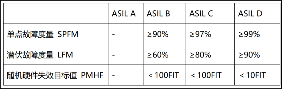 汽车芯片根据其应用场景的危险程度,划分为不同安全等级(QM、ASIL-A至ASIl-D),其中ASIl-D的等级最高,说明其安全要求最严格。行业内通过对芯片的三个指标的计算来划分安全等级,如下图所示。由此可见,1000FIT的故障率远远超过ASIL-B的等级要求。也意味着,对于130nm工艺下的CMOS工艺设计,随着时序存储容量的变大,对于安全设计的要求则越高。