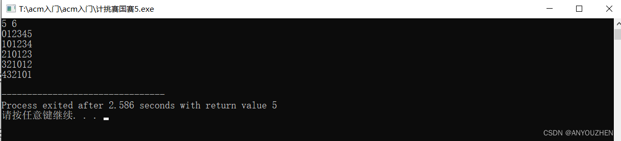 printf("\n");//当i+j==m-1时,到达边界,换行并且跳出当前for循环