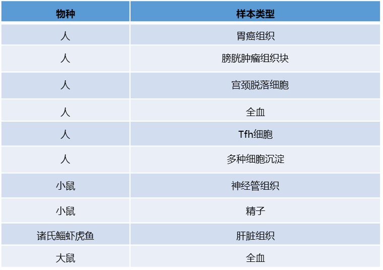 5、我们在RRBS方面做过的物种或者样本类型举例?