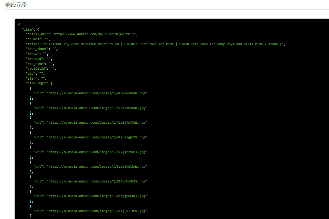items | items[] | 0 | 获取亚马逊商品信息(仅展示格式,数据请以实际商品为准) |